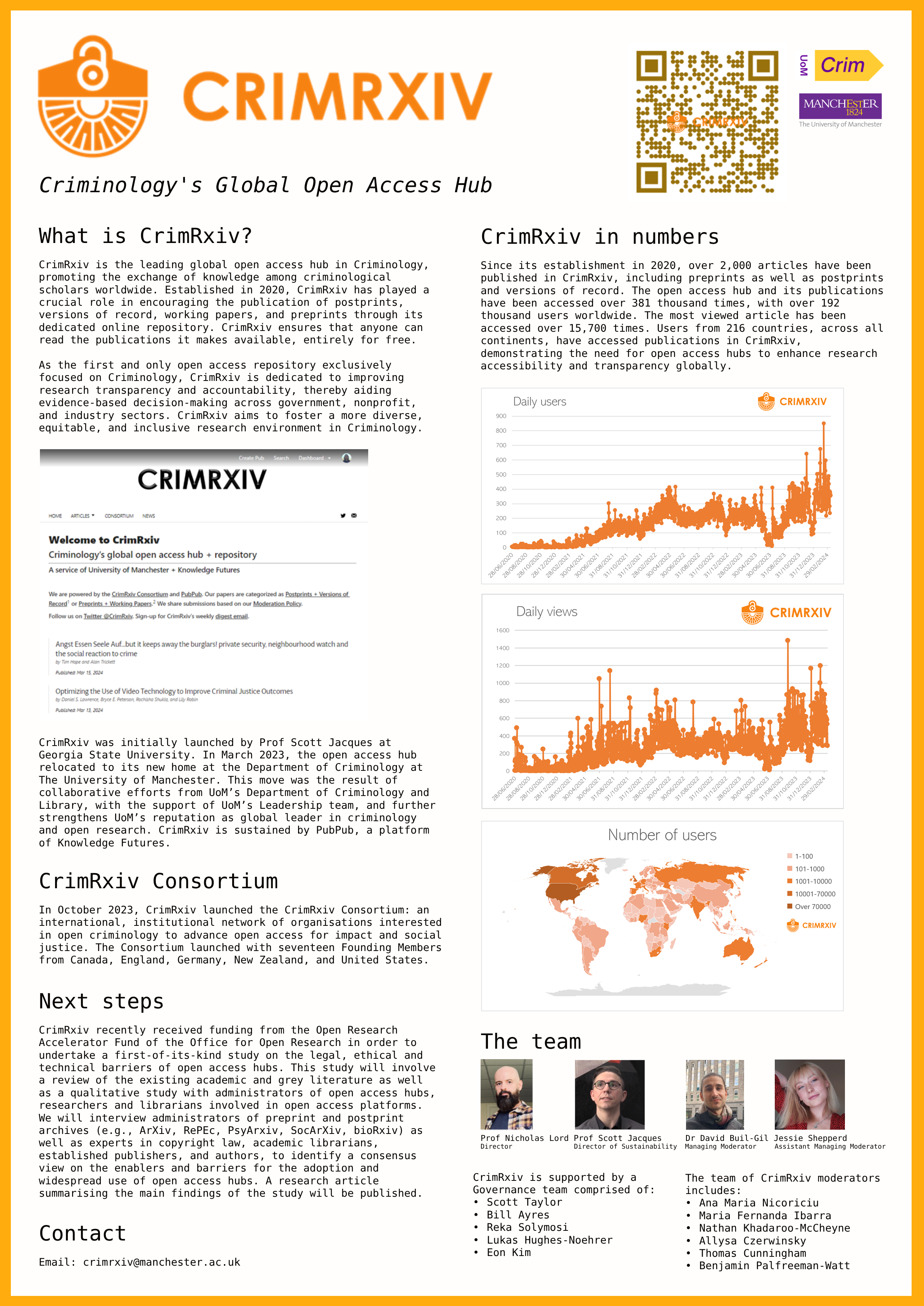 CrimRxiv – Criminology’s Open Access Hub. Poster for UoM Open Research Conference 2024